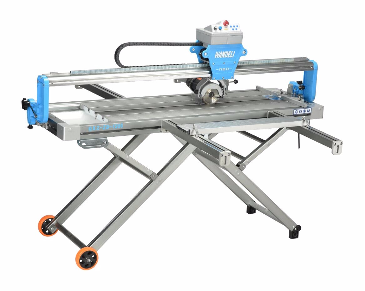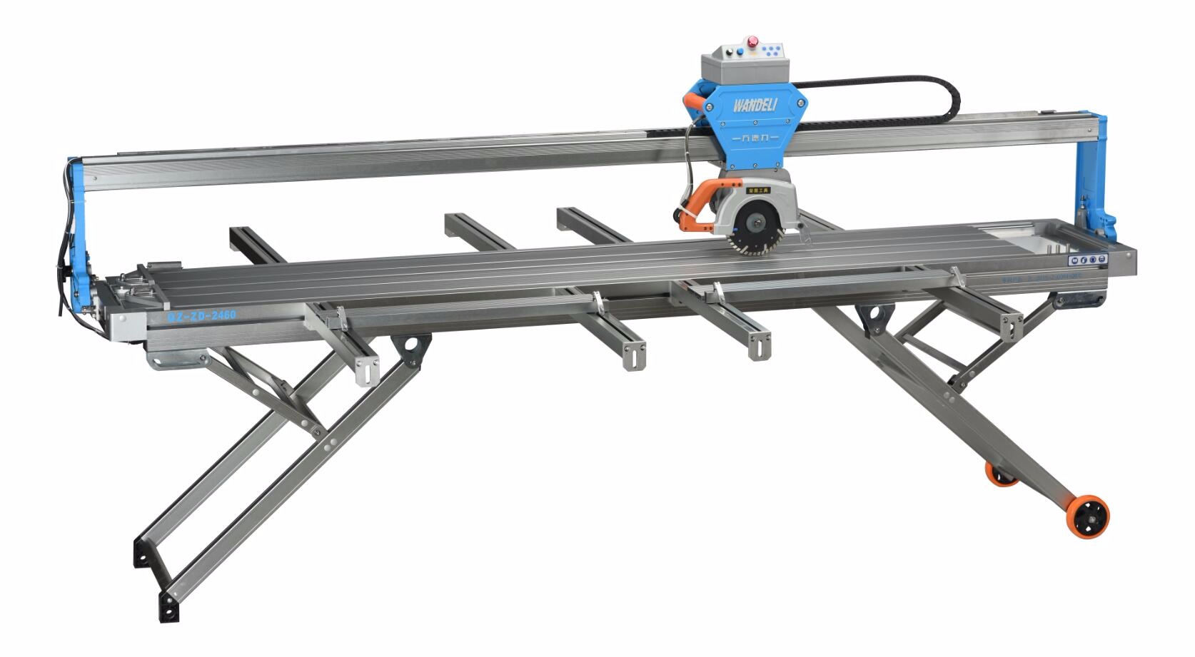 1、切割刀組在石料輸送臺上部并置于機架上,切割刀組之間固定定位導(dǎo)板;切割刀組由電動機、皮帶、刀輪軸、切割刀具組成,切割刀具固定在刀輪軸上